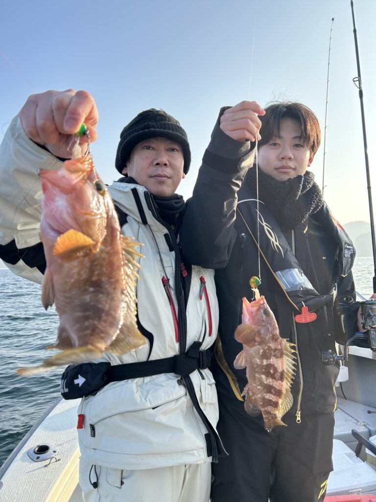 ⑤リベルタス(2/7)・①海正丸(2/12) ⑤リベルタス 当たりがなかなか取れず、ポツポツと…🎣昼過ぎから強風で断念😭またのご乗船お待ちしております😌 ①海正丸 今期初カサゴ釣り🎣終日ポツポツ,小型から良型と数は十分!😁ご乗船ありがとうございました😌